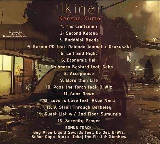 25年以上経った今もなお、MCingはKensho Kumaの人生を導く唯一の光であり続けている。それは日本人が ”生きがい” と呼ぶもの。Kumaが最後に公式リリースしてから8年(その間3本の非公式ミックステープを発表)が経った。この文化の理念に忠実な曲とリリシズムを愛するなら、Kensho Kumaの”生きがい”はきっと期待を裏切らないだろう。 本作のプロデュースの大半は、関西のプロダクションチームMeatbawlsが手掛けた。日本人プロデューサーのCloud NI9EとIkipedia、そして元Stones ThrowのビートメイカーArchitectも参加している。 寝屋川OG MC GeboとAkua Naruもゲスト出演している。