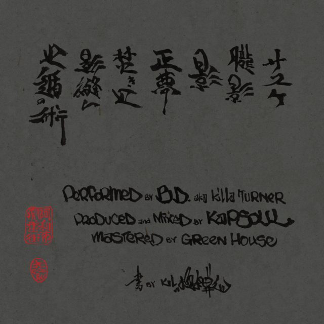 以下は、KAPSOULから届いたコメント「アメリカに住んでから15年ぶりに日本に帰った2015年頃に友達の紹介でGrowaroundで働いているBD君と知り合ってから曲を作る様になりました。BD君とEPは作りたく少しずつは作っていたのですが、nareno hate や瞑想などタイミング的に自分の1stアルバムで使ったりしてEPまでは作れませんでした。 去年くらいに子供の頃に多分再放送で見ていた漫画をYouTubeでみて、その中の音がドープだなと思いサンプルを拾って何曲か作ってからBD君に、この漫画面白いから一度見てこのビートに何か乗せて欲しいと頼んだのが始まりです。doomなどがアメコミをサンプルしているなら自分の中の漫画のソウルはコレだ的な感覚の方向性で作った作品です。この作品はBD君のリリックのセンスがなければ作れないと思いました。音は全てマスタリングまで16ビットでアナログ感とダークさを大切に作りました。使用機材はsp1200、mpc2000、logicでミックスしました。 「焚き火」は20年前くらいに漫画とは関係なく大河ドラマのレコードからサンプルをとりました。5人が(S-kaine、BAZ-LIXON、Camp Chief、OYG、B.D.) 全員違う場所で録音してOYGは最近LAに来た時に録り、マイクの質感もバラバラで大分アングラなミックスですが、それはそれで楽しめると思います。 全体のコンセプトは華やかな世界があればその分自分達のような影の世界も濃くなるといった様な感じだと思います。」